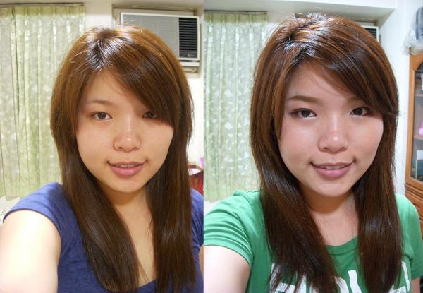 左邊是染髮之後,右邊是原本的髮色喔